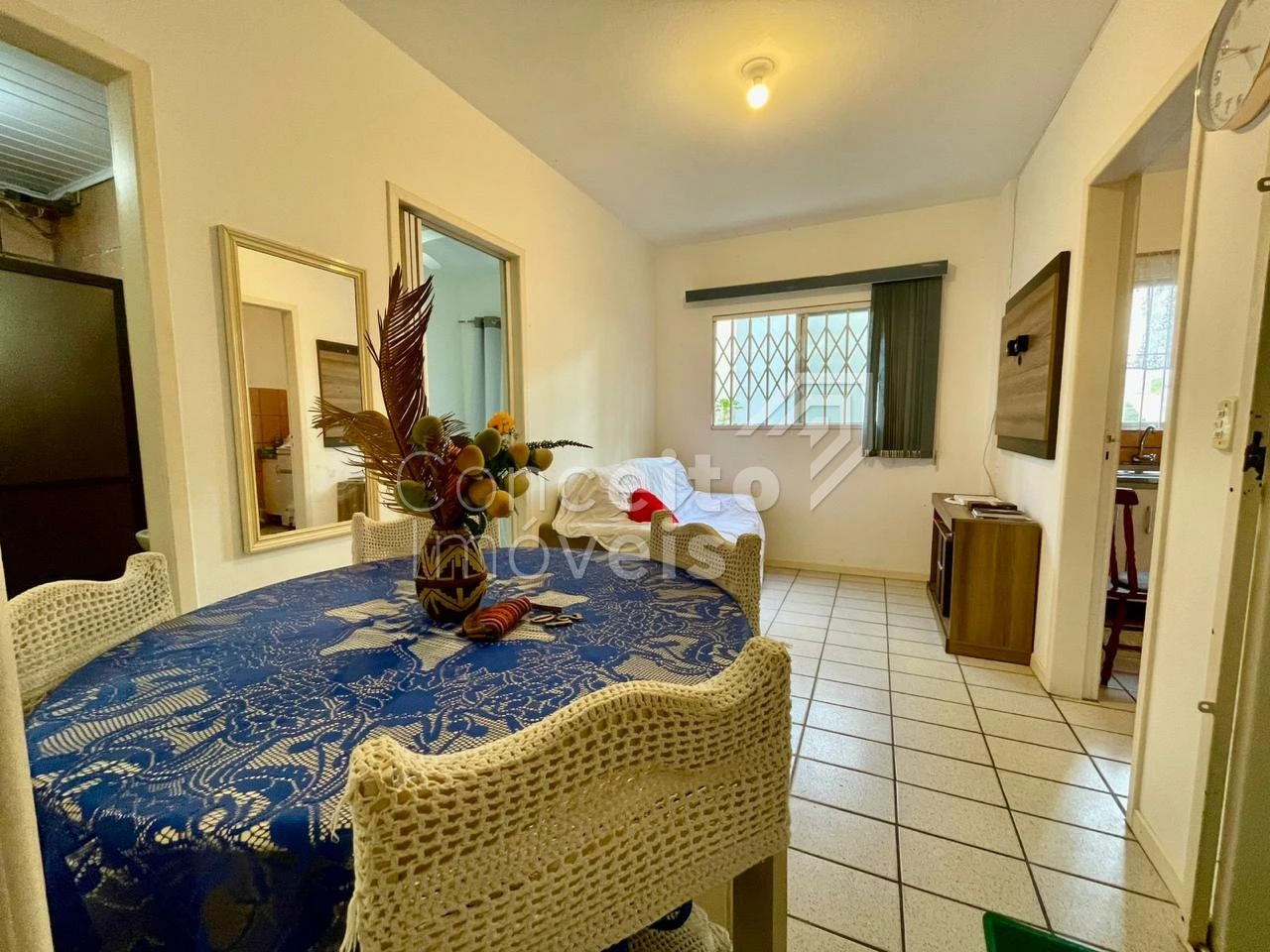 Aconchegante apartamento mobiliado com 02 dormitórios (sendo 01 suíte), vaga individual, banheiro social e área de serviço. Localizado nos fundos do edifício, oferece tranquilidade e excelente aproveitamento de espaço.