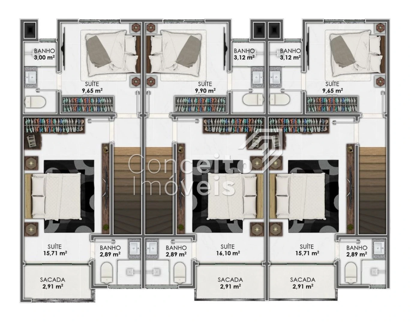 02 Suítes com excelente iluminação natural e 1 com sacada