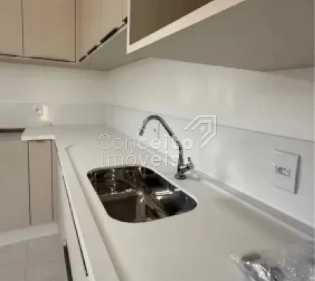 Cozinha moderna com bancada em granito e pia dupla em inox