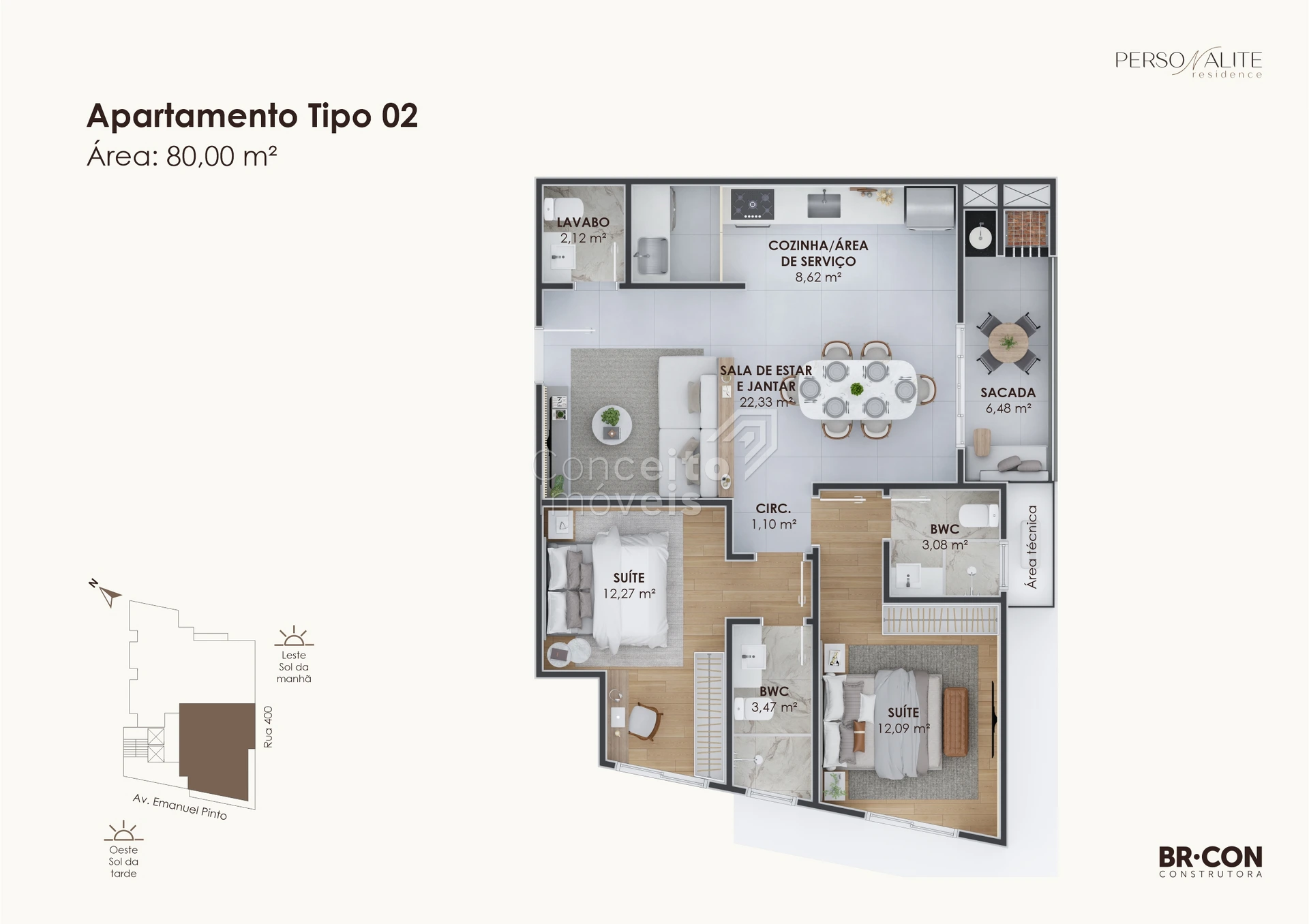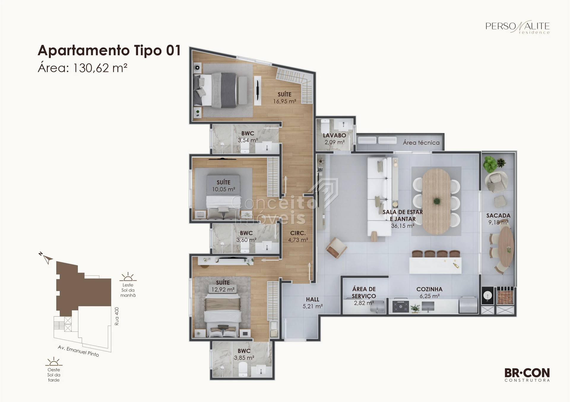 O Personalite Residence nasce como referência de alto padrão em Balneário Piçarras: uma torre única desenhada para oferecer privacidade, generosidade de ambientes e serviços que redefinem morar no litoral. Com apenas dois apartamentos por andar, plantas inteligentes (opções de 2 suítes — 80 m² e 3 suítes — 130 m²), o empreendimento prioriza iluminação natural, ventilação cruzada e vistas privilegiadas — a apenas 230 metros do mar. Cada unidade entrega soluções de acabamento premium, varanda integrada e infraestrutura pensada para personalização e conforto absoluto.
