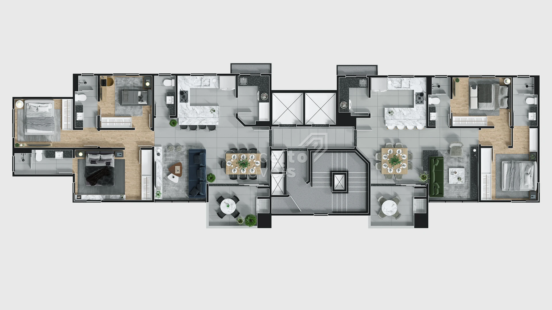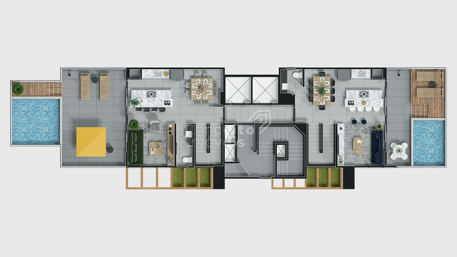 Nas plantas mais sofisticadas (garden ou duplex), há terraço e piscina privativa, trazendo sensação de casa independente, conforto absoluto e privacidade extra — ideal para quem busca alto padrão e exclusividade.
