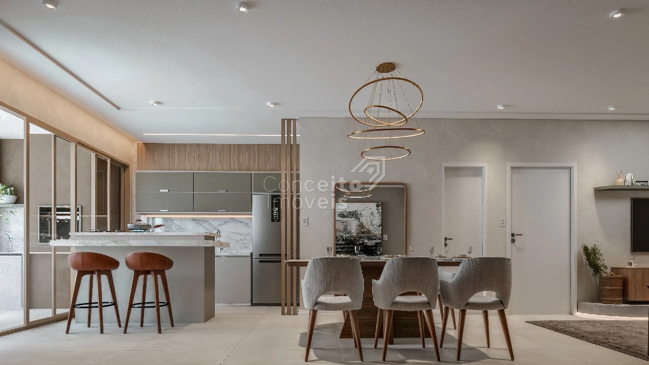 Acabamentos de alto padrão, incluindo porcelanato, gesso, e iluminação embutida, criando ambientes sofisticados e funcionais.