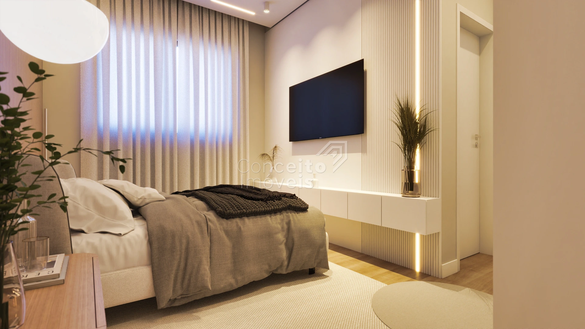 A área íntima oferece privacidade e tranquilidade, com dormitórios bem distribuídos e uma suíte que traduz aconchego, funcionalidade e sofisticação, criando o refúgio perfeito para o descanso.
