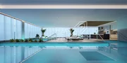 Área de piscinas cobertas com espaço gourmet