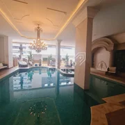 Hall de entrada decorado e mobiliado com piso em mármore e som ambiente
