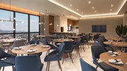 Salão de festas elegante com acabamentos nobres.