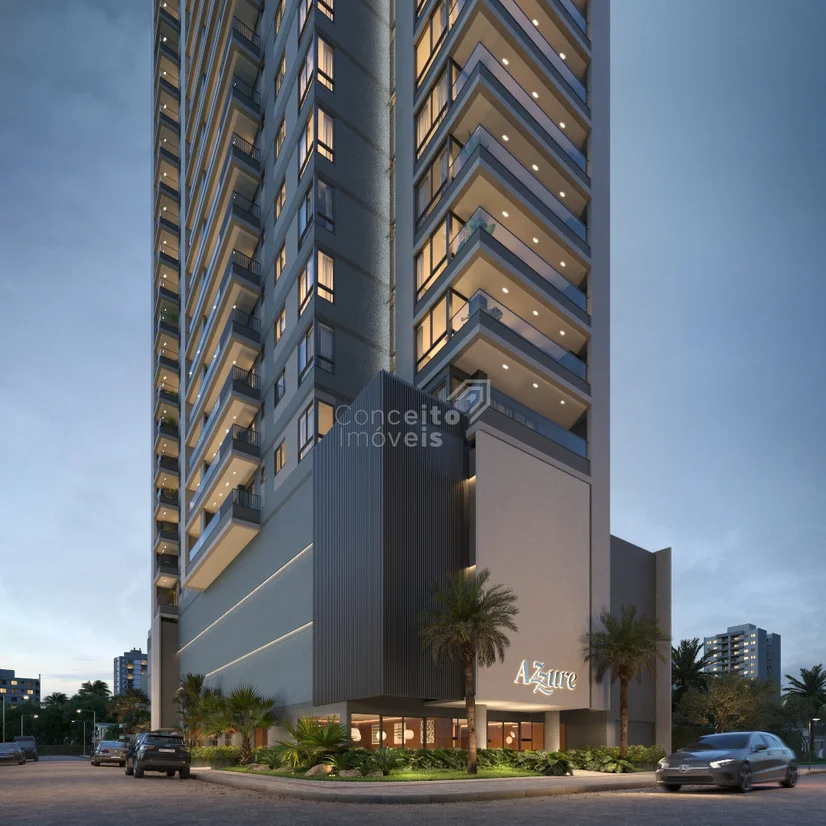 O Azzure apresenta um projeto arquitetônico contemporâneo com linhas horizontais limpas e detalhes que reforçam o conceito de modernidade e exclusividade.
