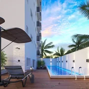 Piscina coletiva e áreas comuns para lazer e relaxamento.